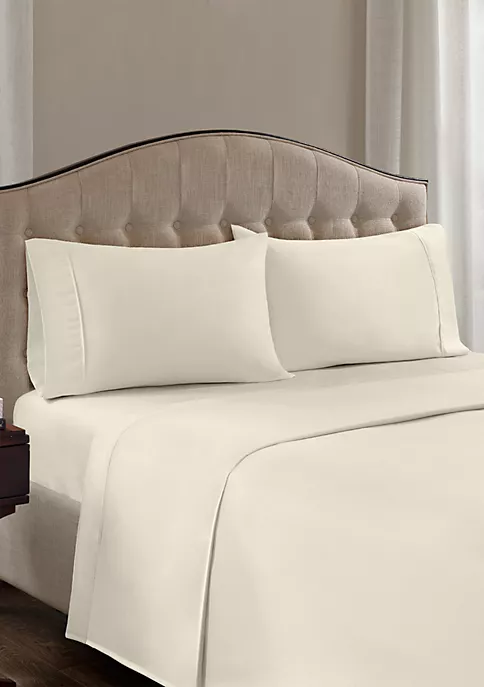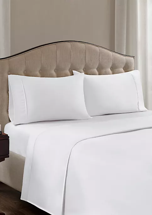 โข Set includes flat sheet, all-over elasticized fitted sheet & 2 pillowcases