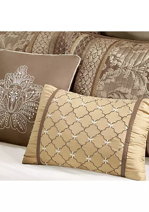 3 Decorative Pillows: 12″ W x 18″ L / 16″ W x 16″ L / 10″ W x 18″ L