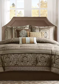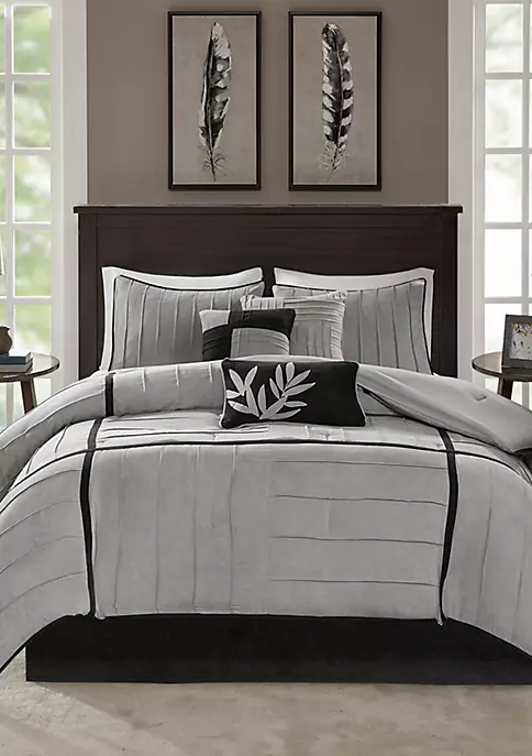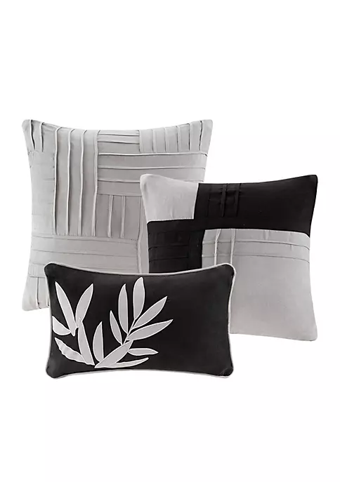 - 1 comforter, 2 standard shams, 1 bed skirt, 3 decorative pillows.