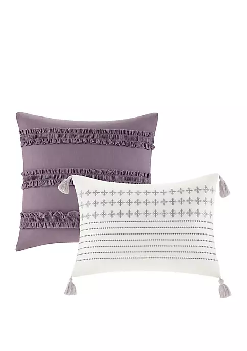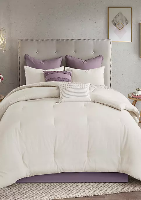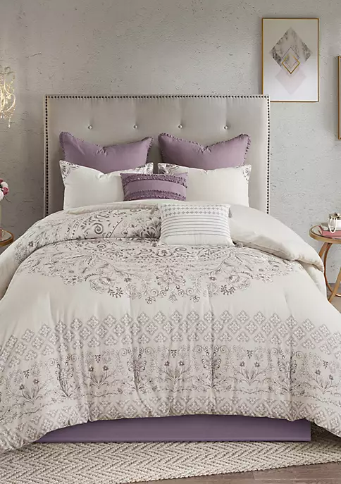 • Set includes: 1 comforter, 2 shams, 2 Euro shams, 1 bedskirt, 2 decorative pillows
