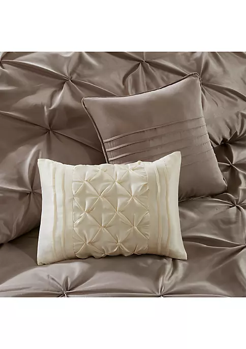 4 Decorative Pillows: 16″ W x 16″ L / 12″ W x 18″ L / 18″ W x 18″ L / 12″ W x 16″ L