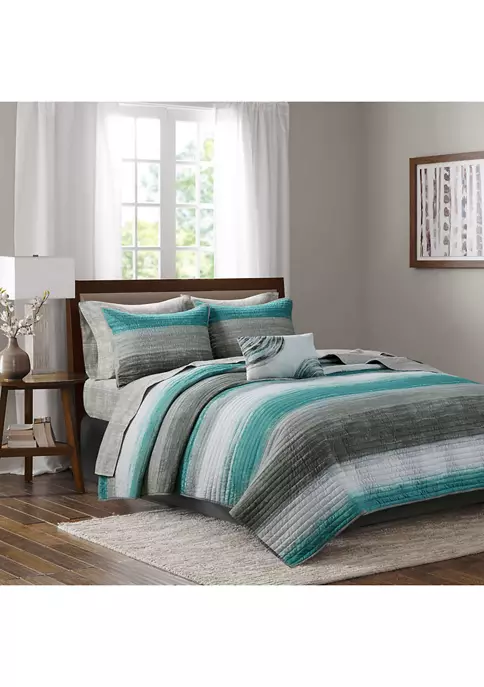 โข Casual bedding ensembles featuring water color print coverlet and cotton sheet set