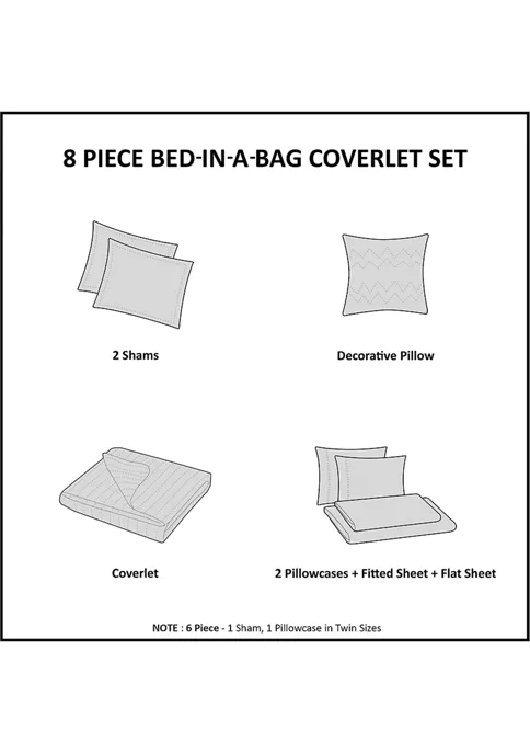 โข Set includes coverlet, 2 shams (1 in Twin), 1 oblong pillow, fitted and flat sheet and 2 pillowcases (1 in Twin)