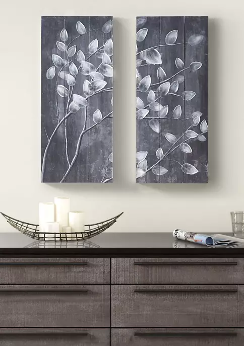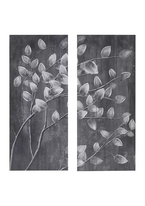 โข Botanical Hand embellished wood wall decor 2 piece set