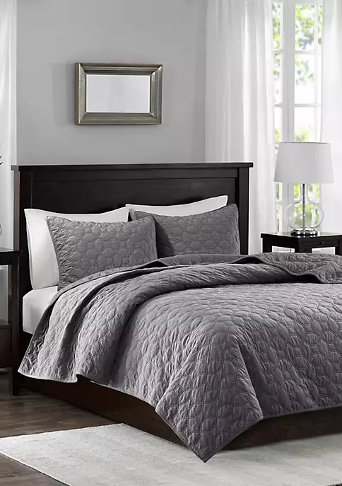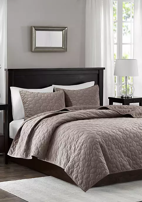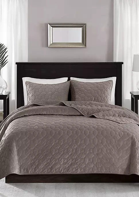 - Elegant and soft velvet coverlet set in geometric quilting technique