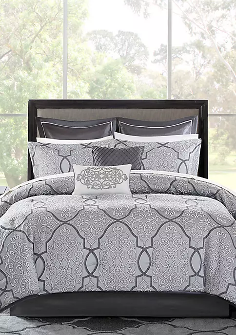 New ✨ Madison Park Lavine 12-Piece Complete Bed Set- Silver 🎁