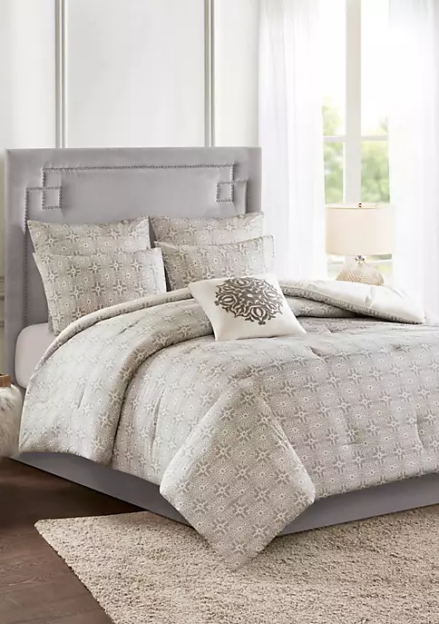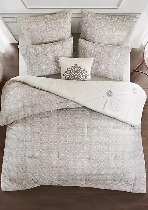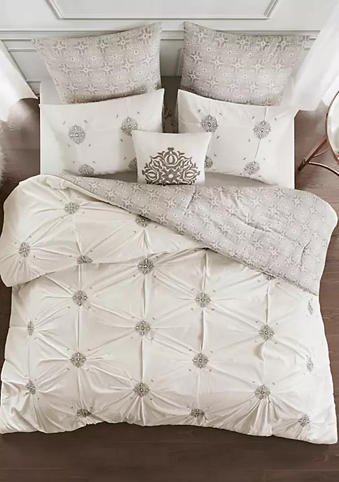 - Tufted embroidery on one side, all-over medallion print on the reverse