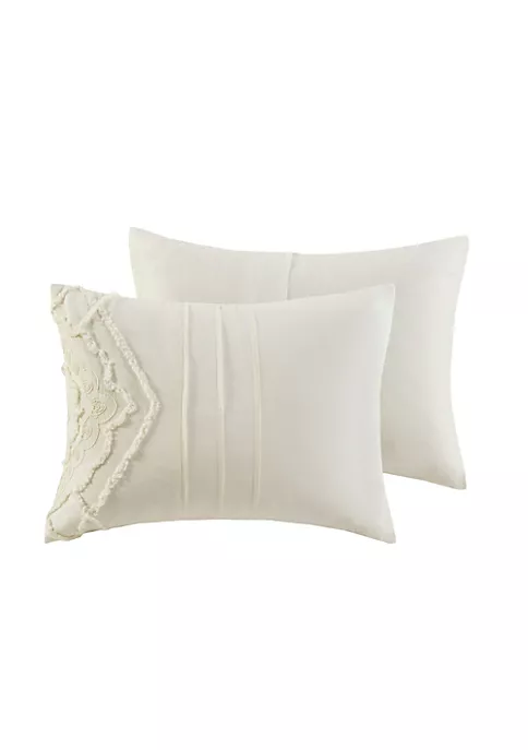 • Shabby chic style cotton duvet cover set with chenille and embroidery details