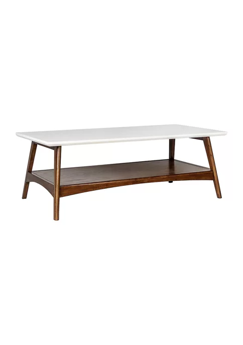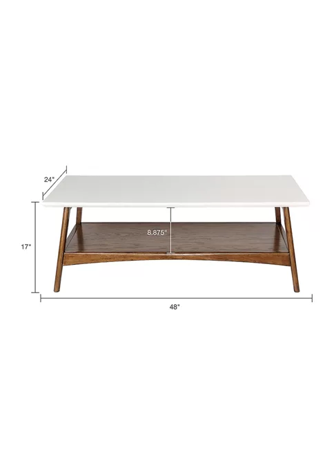 Add the bold Madison Park Parker Coffee Table to your living space. This all wooden mid-century inspired desk will go nicely with your living room decor. It features an off-white finish tabletop composed of manufactured wood, a solid wood frame, and a bottom shelf for extra storage space. The two-tone gives this table a striking contrast.
