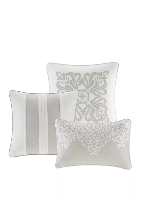 3 Decorative Pillows: 22 in W x 22 in L/ 20 in W x 20 in L/ 14 in W x 20 in L