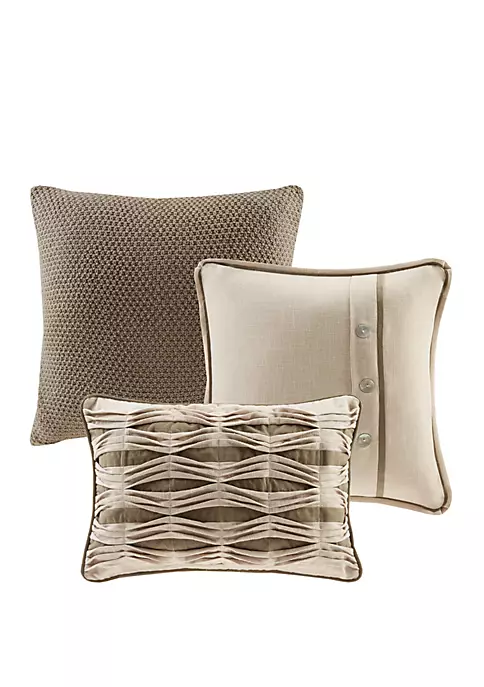 3 Decorative Pillows: 22 in W x 22 in L/ 20 in W x 20 in L/ 14 in W x 20 in L