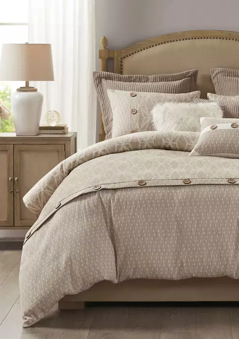 • Duvet style comforter insert, so no visible bartacking lines seen on top of the bed