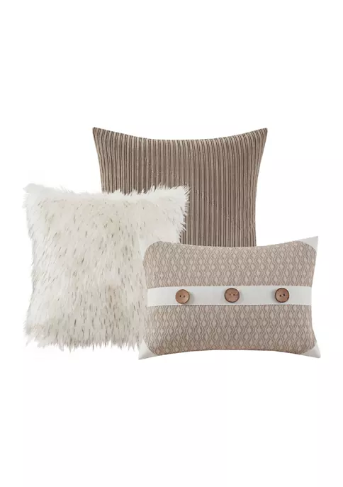 • Set includes: comforter, 2 shams, 2 euro shams (3 in King size), 2 square and 1 oblong decorative pillows