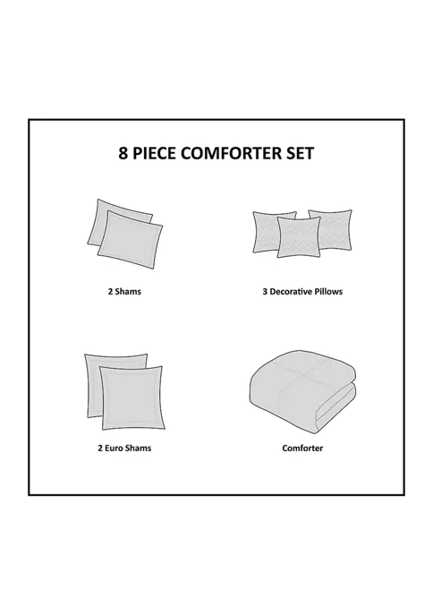 โข Set Includes Comforter, 2 Shams, 2 Euro Shams (King Has 3 Euro Shams), 2 Square Pillows And 1 Oblong Pillow